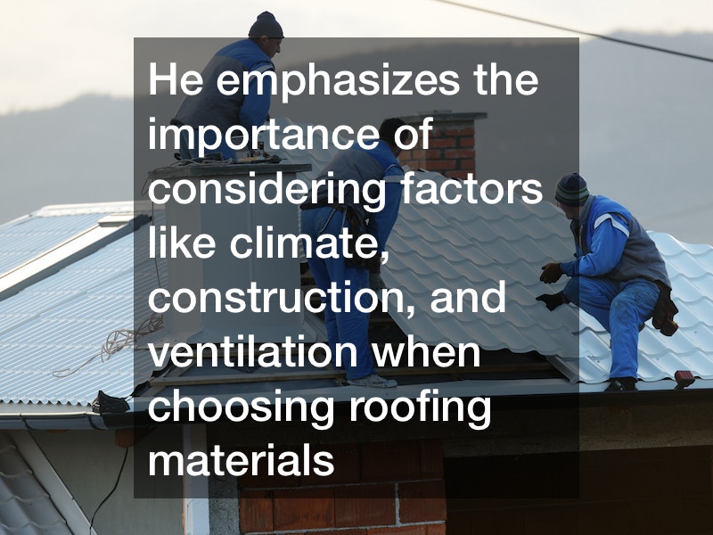 The reporter invites the owner of a local roofing company to discuss roofing options further. He emphasizes the importance of considering factors like climate, construction, and ventilation when choosing roofing materials. The discussion covers the installation process, including the use of ice and water shields, synthetic underlay, and the architectural shingle itself.