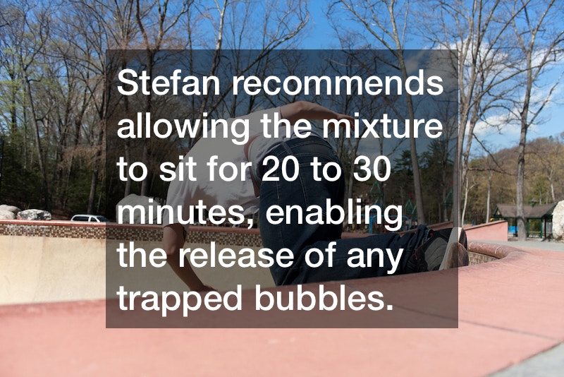 Stefan specifically recommends the epoxy resin brand Wombat for the project, underlining its efficacy in achieving a smooth, bubble-free coating.